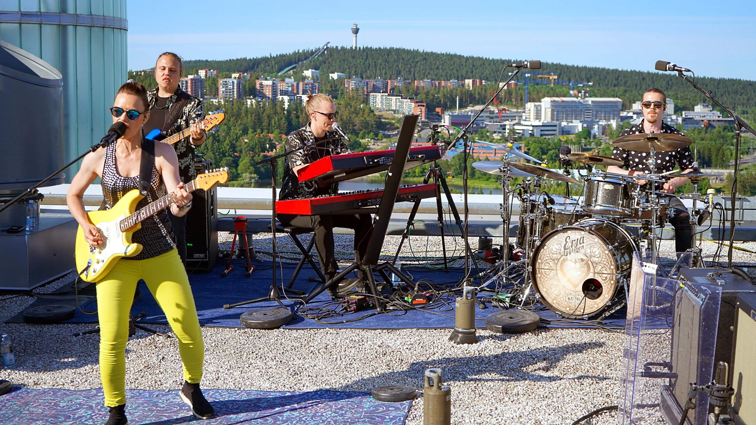 Erja and her band had the most amazing gig in Kuopio, Finland on 27th of June while doing Live Stream on the rooftop of Novapolis. The weather was absolutely stunning and the camera crew was able to show the wonderful City of Kuopio at it’s best to all the viewers. We had a privilege of also having the actual City of Kuopio supporting the event, thank you! Until now the stream has had incredible 95 000 views already, and during live stream 3600 people were watching the actual live gig. The stream is still available on Erja Lyytinen Facebook Page. Thank you for the team and all the collaborators and sponsors for making this possible and hopefully we can do something as crazy and innovative as this was in the future too!